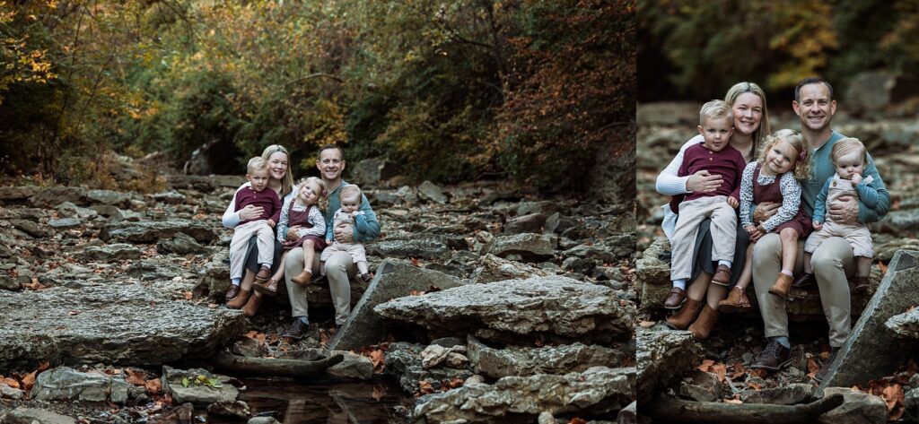 If I’m not off somewhere shooting a wedding on a fall weekend, you may very well find me here. And chances are you will find a beautiful family with me, like this one! I love that so much of my job entails hanging out in beautiful places with happy people. The creek is always a little bit of an adventure because it requires a little bit of maneuvering and exploring skills to get to the good spots sometimes. Throw 3 toddlers into the mix and it’s even more exciting, but this family was up to the task and I think it paid off!